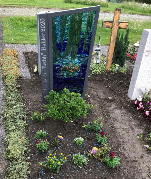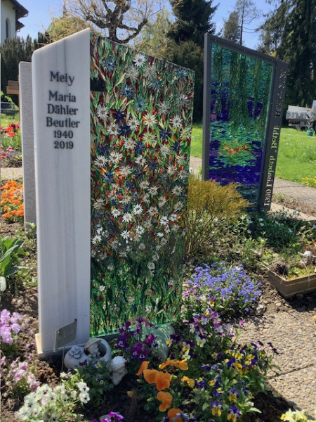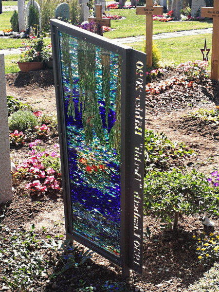 Die Glasarbeiten leben vom Stand und Lauf der Sonne. Der Anblick ergibt immer wieder ein anderes Bild. Wird das Objekt von vorne beschienen, ist von der Rückseite her ein Glitzern zwischen den Glasteilen erkennbar. Durch die Transparenz des Glases wird beim Betrachten der unmittelbare Hintergrund mit eingeschlossen.